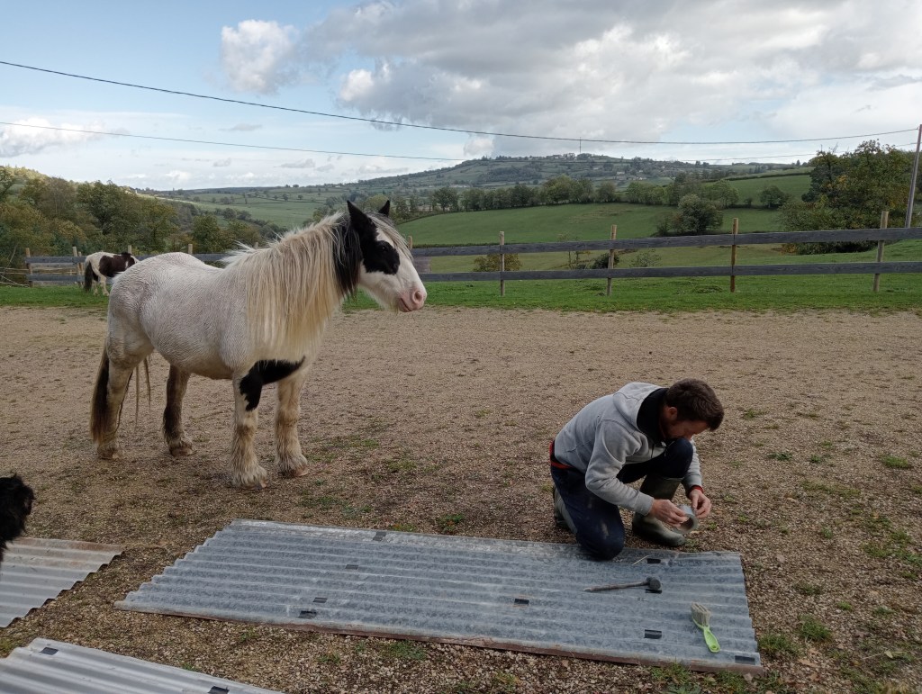 C’est l’heure de parer les chevaux, c’est à dire de couper leurs ongles. Et oui un cheval avec de beaux sabots est un cheval en pleine possession de ses moyens.