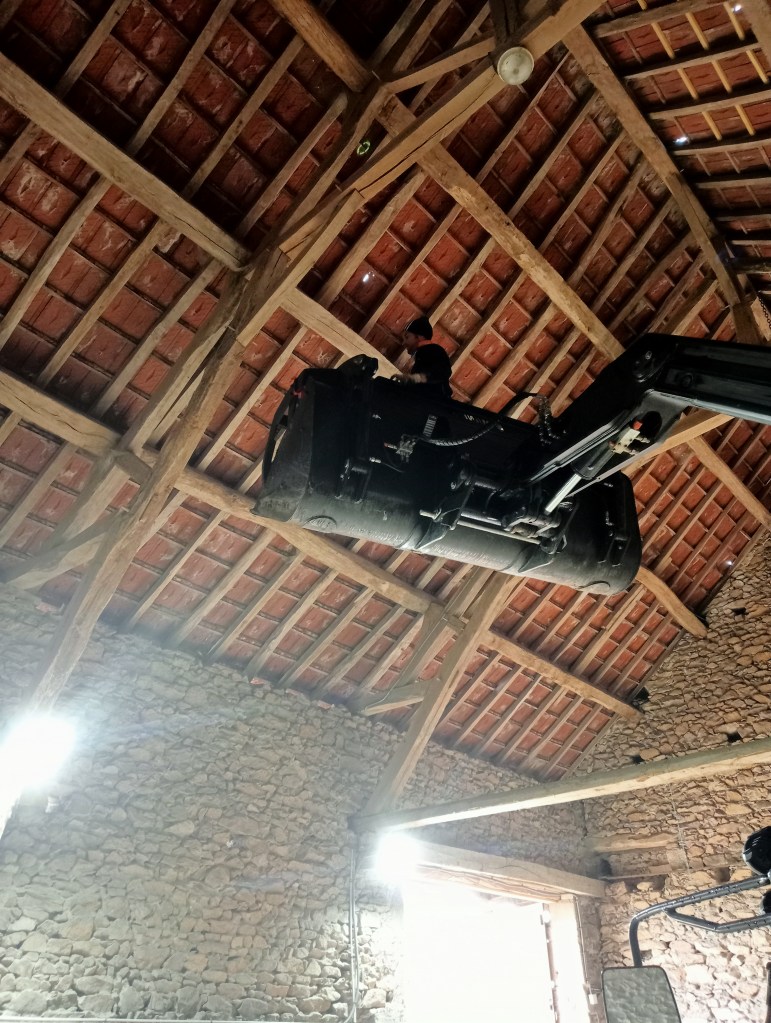 Après un gros coup de vent, réparation de quelques tuiles cassées