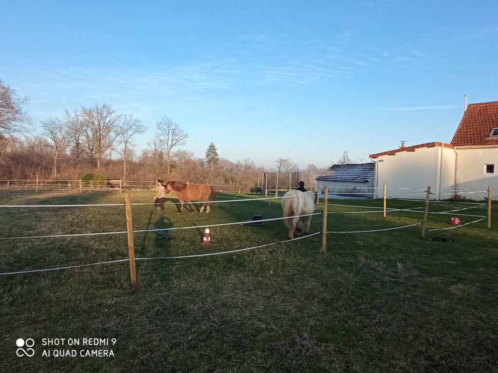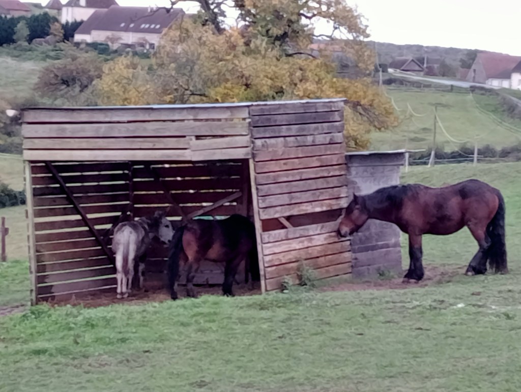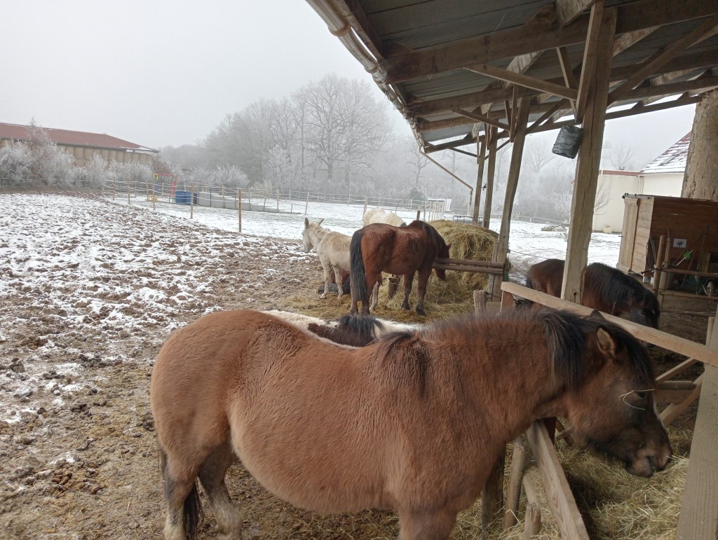 Tout est mis en place Au Petit Écrin pour que les chevaux soient dans les meilleures conditions. Ils ont plusieurs abris, du foin à volonté, différents accès aux pâtures. Le bien-être des chevaux est un paramètre indispensable au bon déroulement des séances.